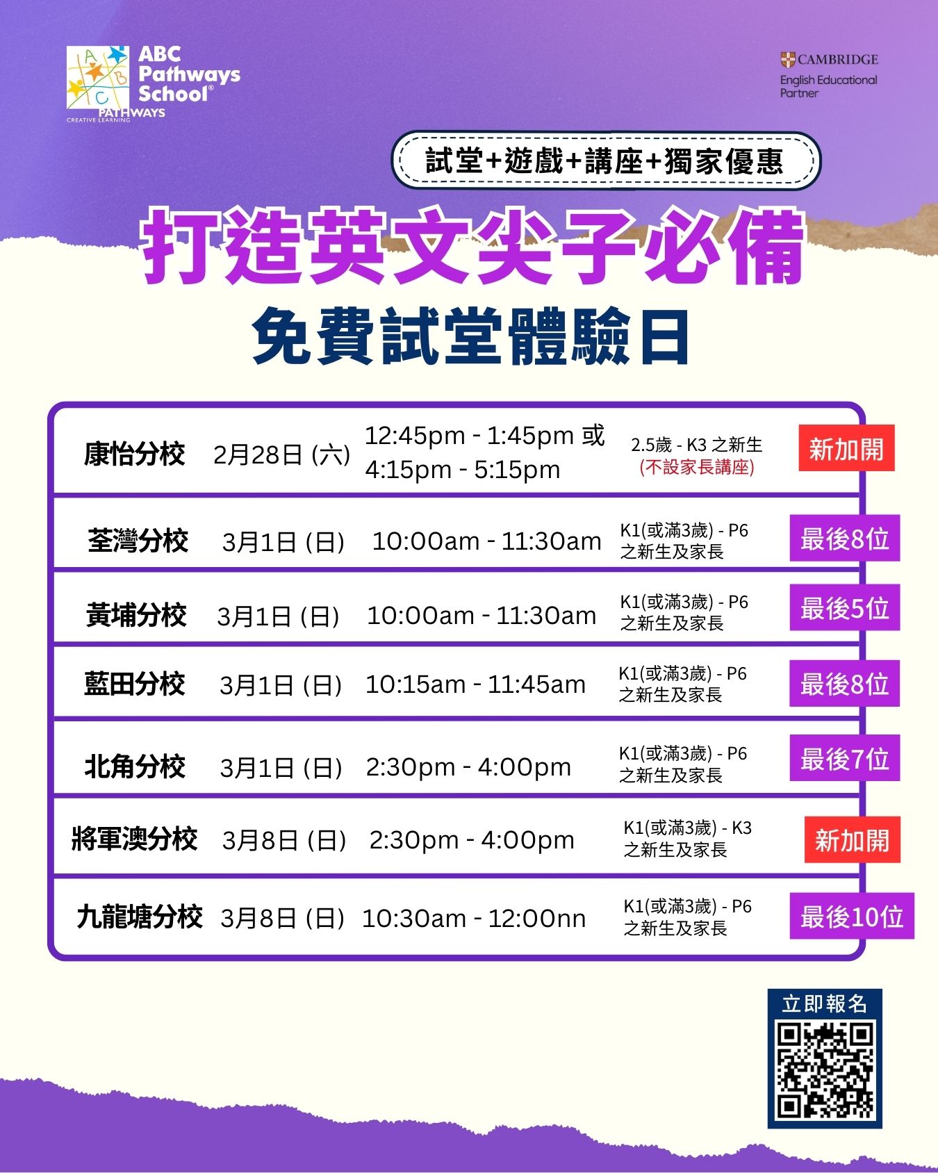 - 地點:各間ABC分校
