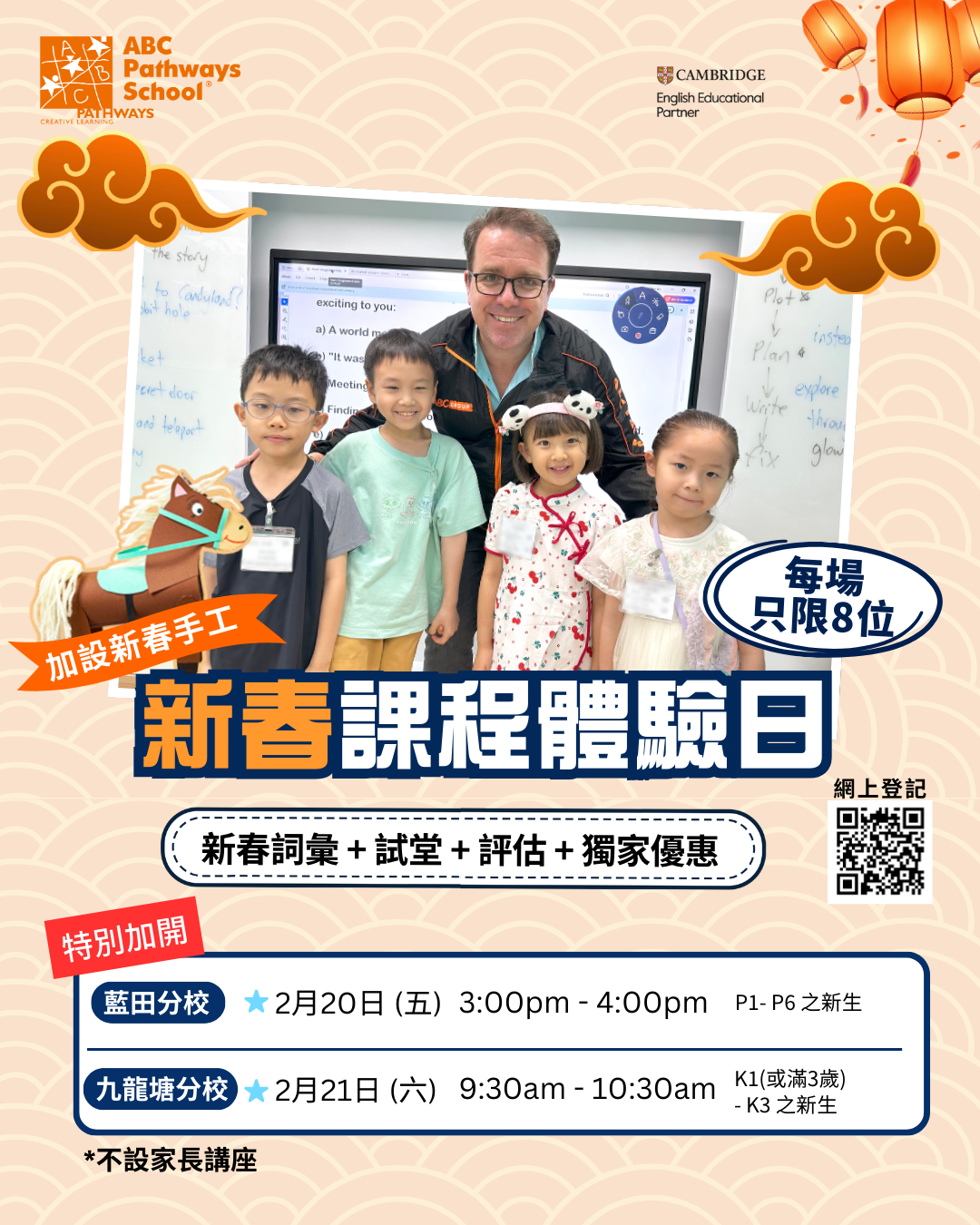- 對象:K1(或滿3歲)- P6 之新生及家長