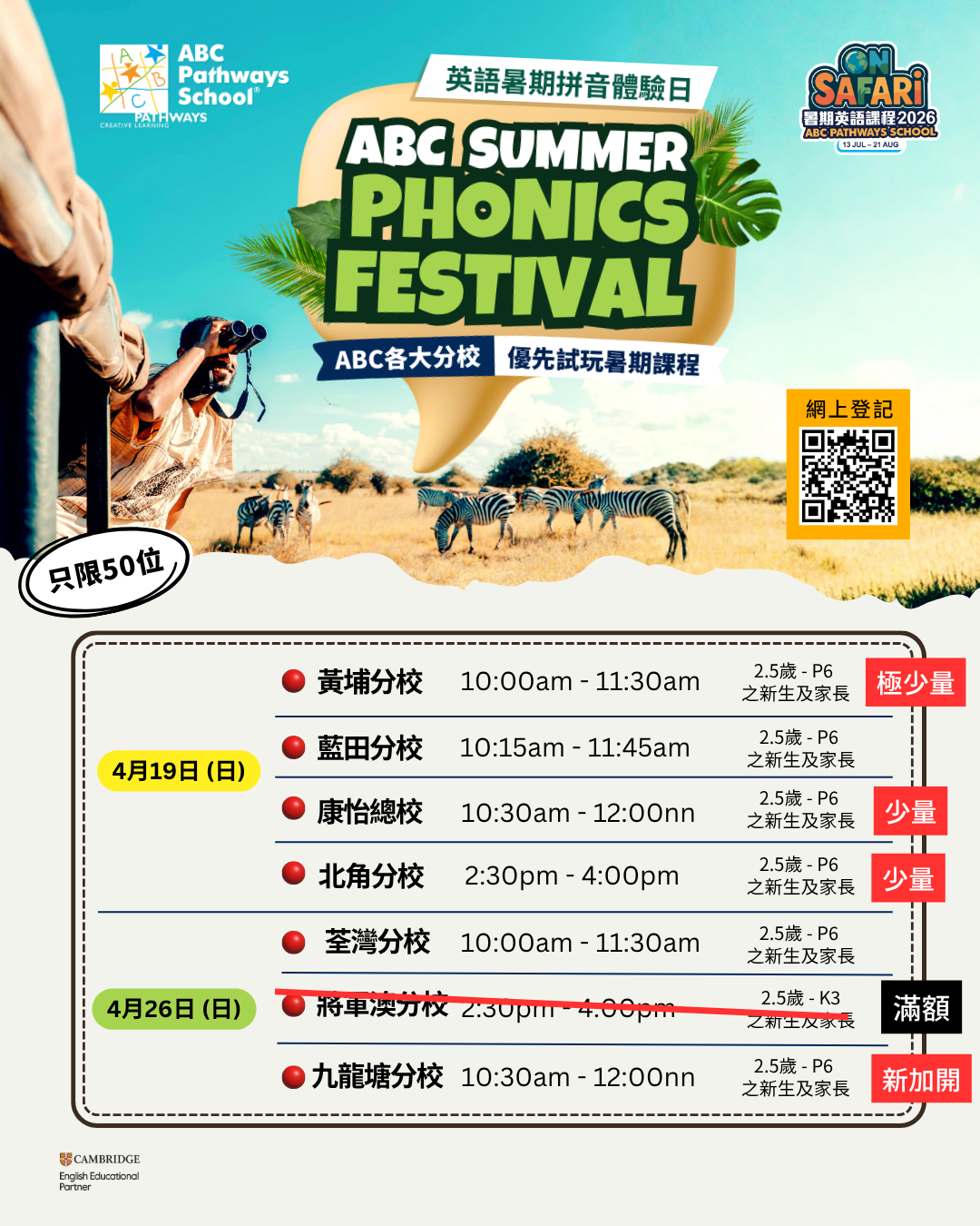 每場只限50人,先到先得!