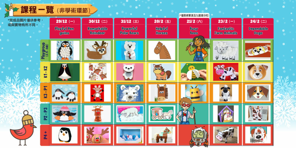 本次節日課程以聖誕及新年為主題,內容包括學術英語及興趣活動;
