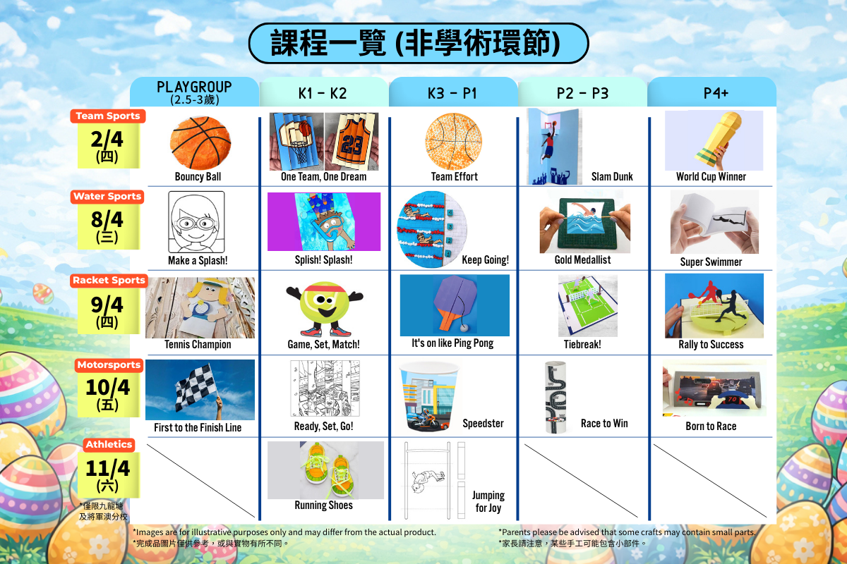 本次節日課程以體育運動為主題,內容包括學術英語及興趣活動;