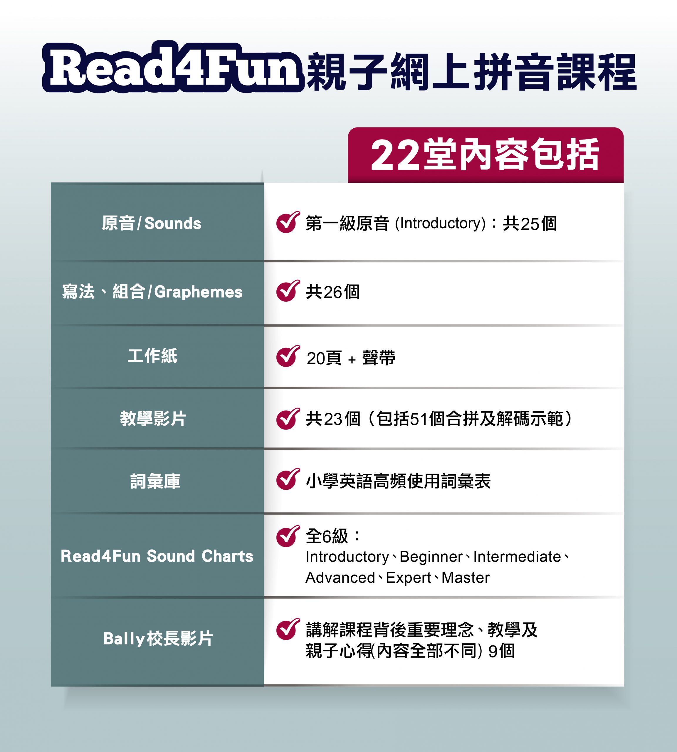 《Read4Fun: Primary》 - 針對香港學生程度及學習速度而設計,於6星期內掌握拼音之基本功,有效大大提升讀寫能力